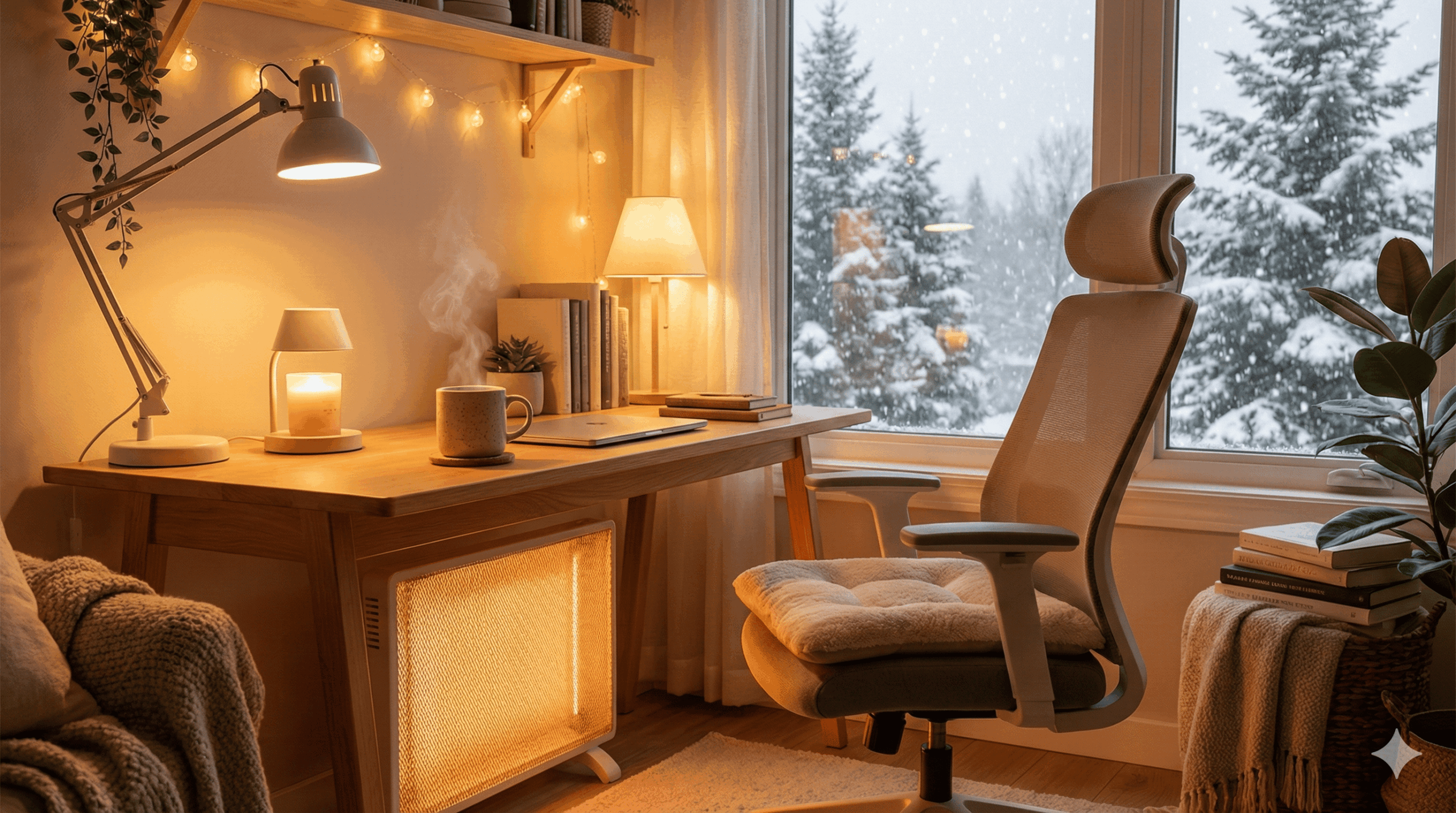冬のデスク環境を快適にするポイントは、**「自分の周りだけを効率よく温める」**ことです。 部屋全体の暖房温度を上げるよりも電気代が安く済み、頭は涼しく足元は暖かい「頭寒足熱」の状態で集中力も続きます。